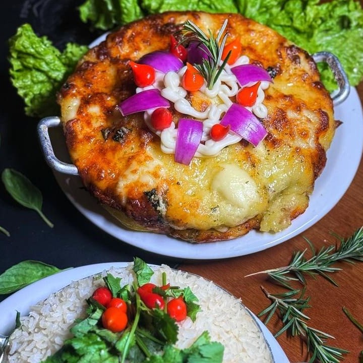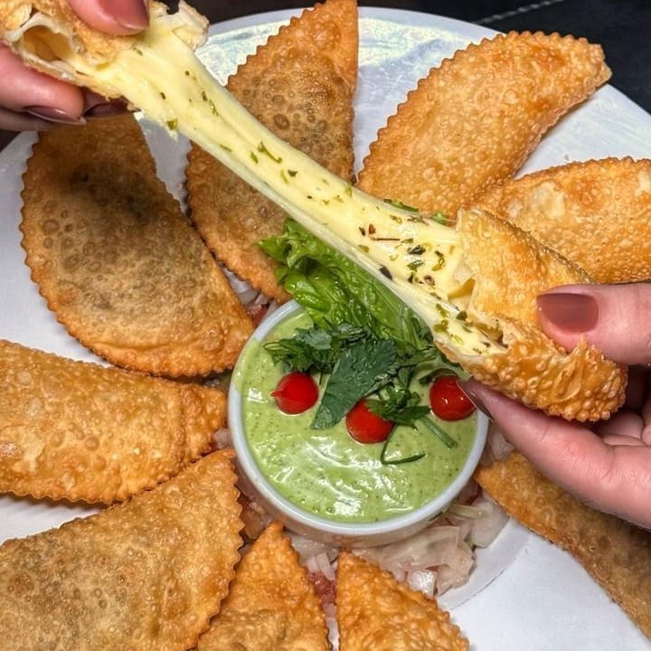 Carne moída, muçarela, azeitona e cebola _ _#Torresmo #Salgadinho #Picanha #porções #Filémignon #pratosespecias #Bacalhau #feijoada #carnes #caldos #saladas #panquecas #lanches #bebidas #delivery #