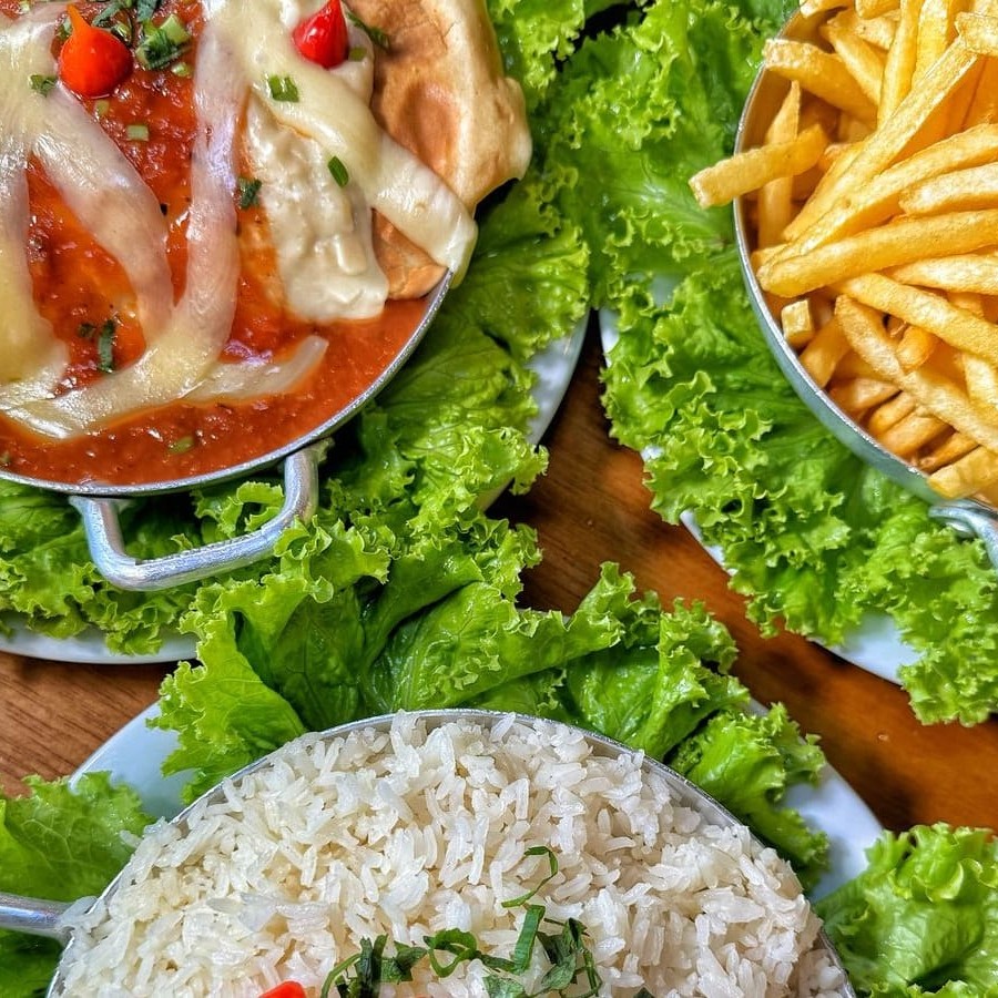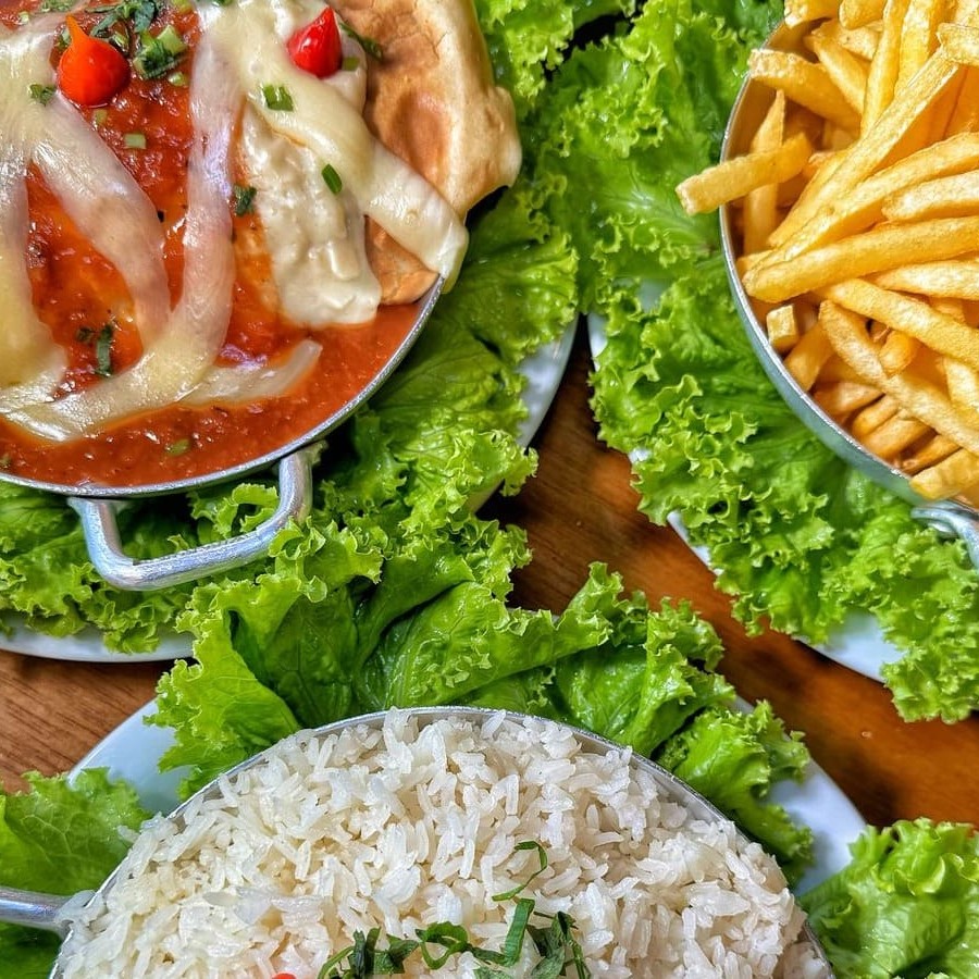 Arroz e fritas _ _#Torresmo #Salgadinho #Picanha #porções #Filémignon #pratosespecias #Bacalhau #feijoada #carnes #caldos #saladas #panquecas #lanches #bebidas #delivery #