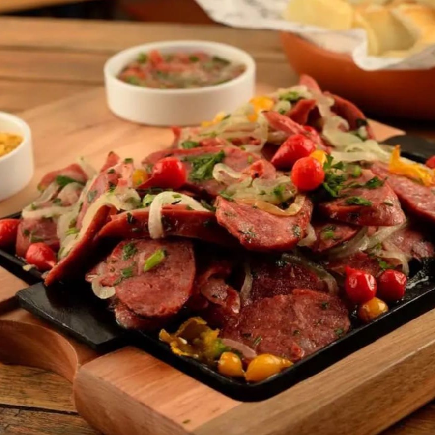carne linguiça frango coraçao queijo coalho pao de alho panceta linguiça apimetada tulipa mussarela defumada