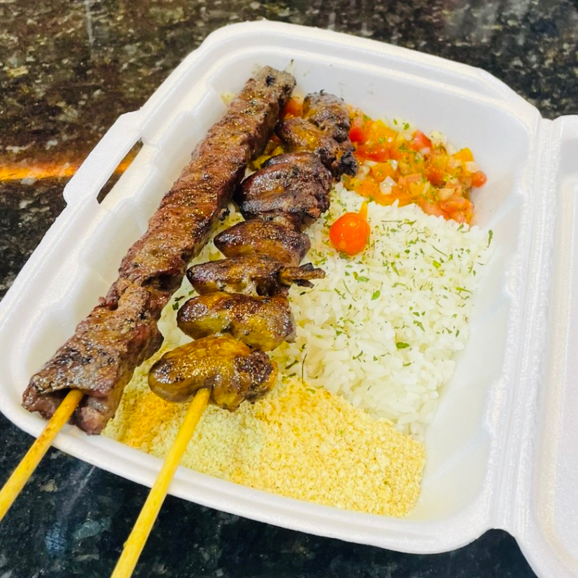 Esse é pra você que está em dúvida ou que gosta dos dois sabores, explosão de sabor em nosso espetinho misto de carne e linguiça!
