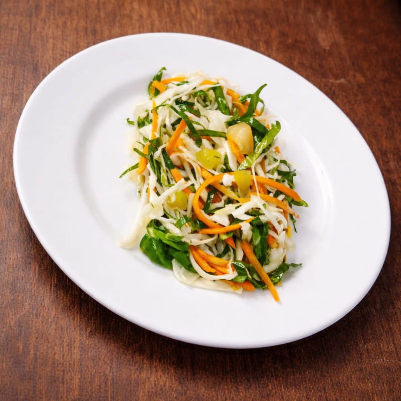 Repolho, Cenoura, Tomate, Couve, Azeite, Sal e Vinagre
