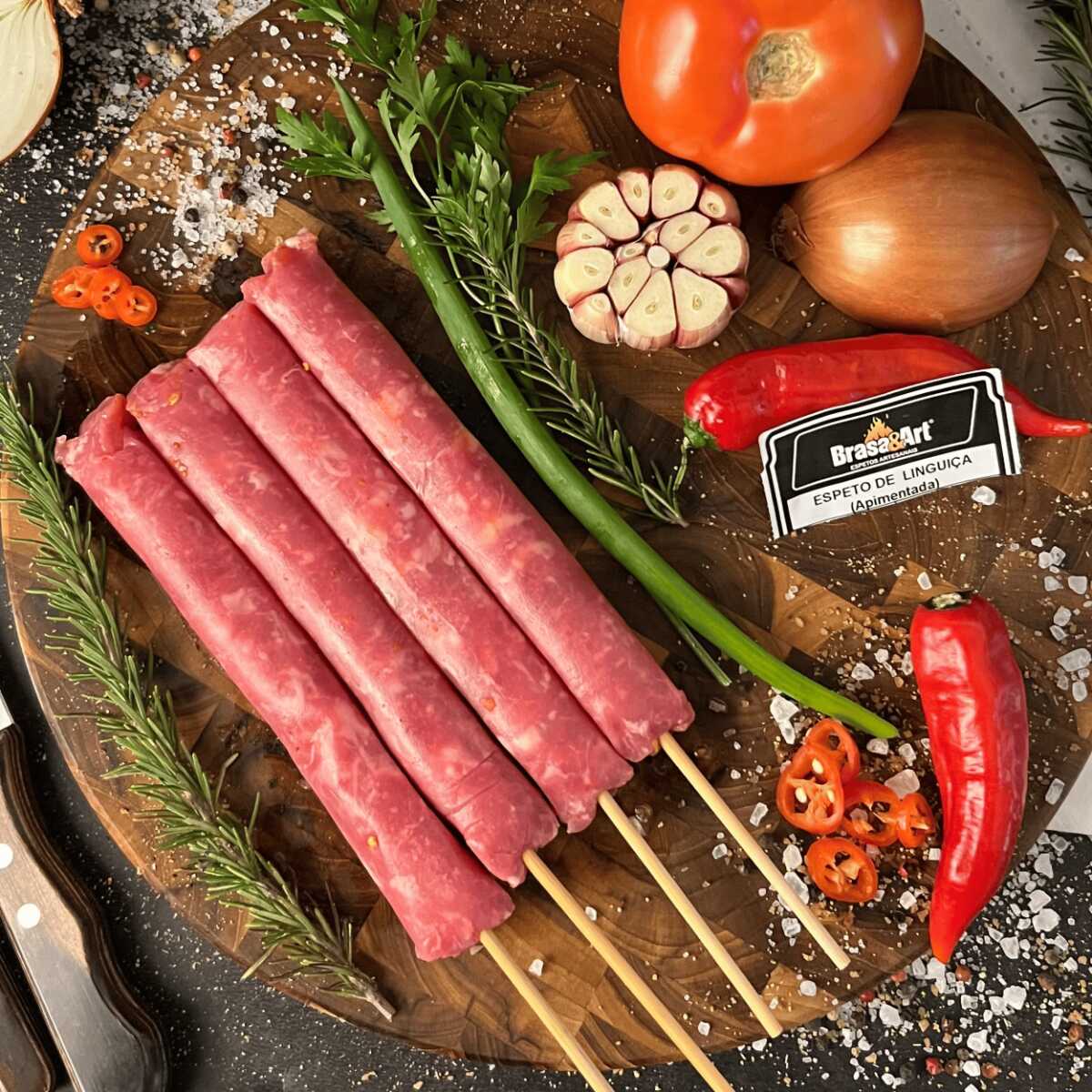 espeto de linguiça apimentada