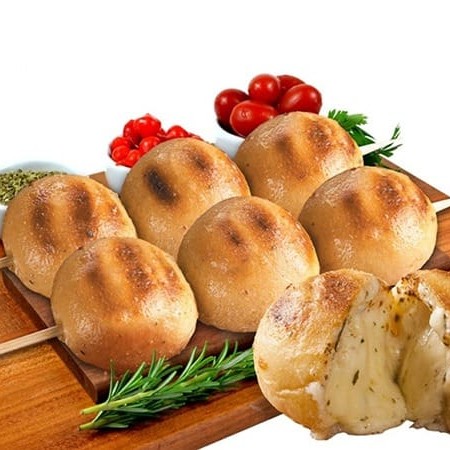 Pão bolinha com recheio de mussarela. Delícia para acompanhar um espeto.
