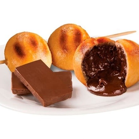 Pão bolinha quentinho, recheado de chocolate. Docinho é sempre bom pra finalizar.