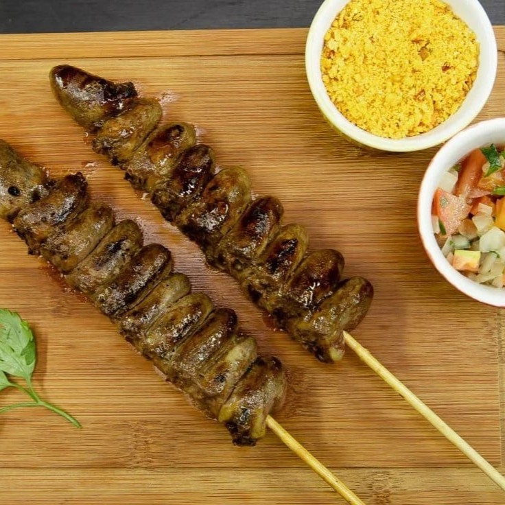 Delicioso espetinho do peito do frango.