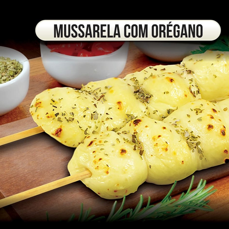 Espetinho de mussarela bolinha com orégano. Combinação simples e divinamente gostosa.