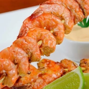 Camarão Sete Barbas, sem cabeça, assados no espetinho ! Com Limão é uma delícia !