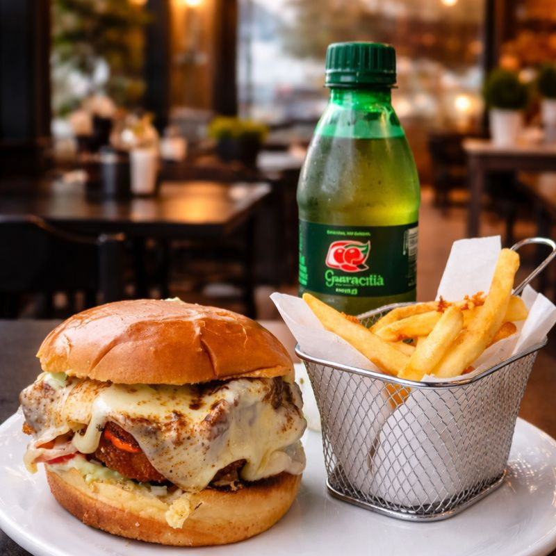 Delicioso Burguer de picanha 180g servido em um pão brioche, acompanha creme de alho, vinagrete (enviado separado) e porção de fritas (100g) e um Refri lata 350ml. Você pode turbinar seu lanche !
