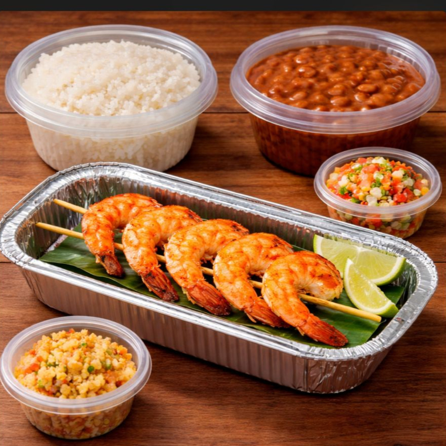 Marmitex Com Espetinho De Camarão