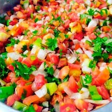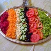 Alface, tomate, cebola roxa, pepino e cenoura ralada,beterraba ralada. Serve 3 pessoas.