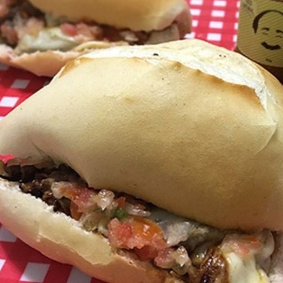 *Pão francês recheado com vinagrete, molho de alho e um espeto