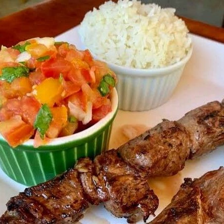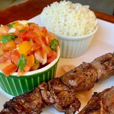 Acompanha: Arroz, vinagrete, farofa mais 2 espetos de sua preferência.