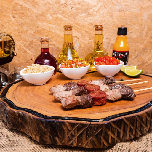 1 ESPETOS LINGUIÇA, 1 CARNE E 1 CORAÇÃO
