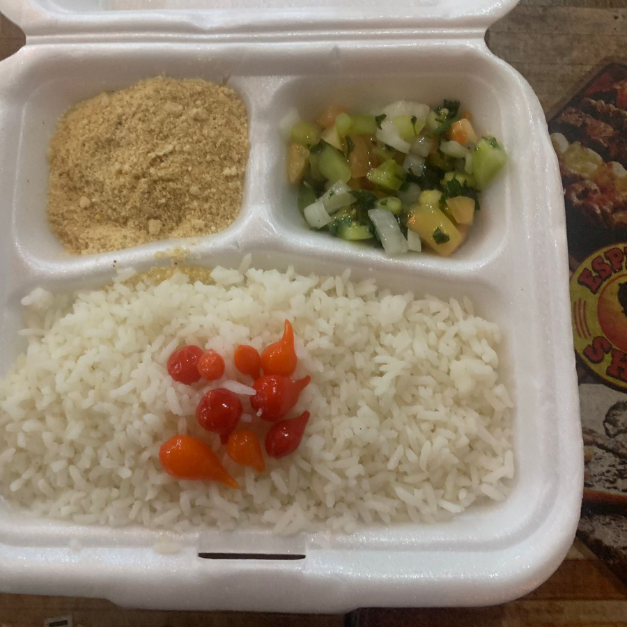 Porção De Arroz Com Farofa E Vinagrete!!!