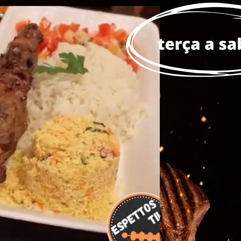 Arroz Branco, Farofa Temperada, Vinagrete + Um Espetinho .