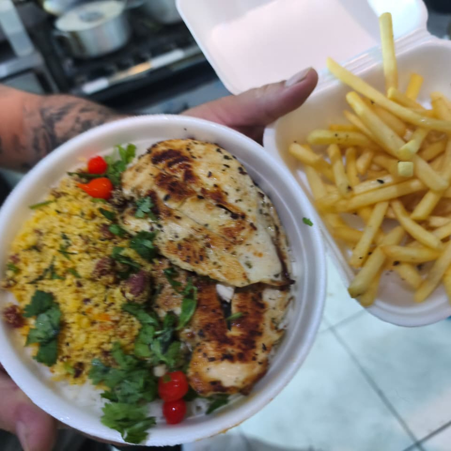 Arroz branco, Feijao, File de FRango Grelhado,salada tradicional