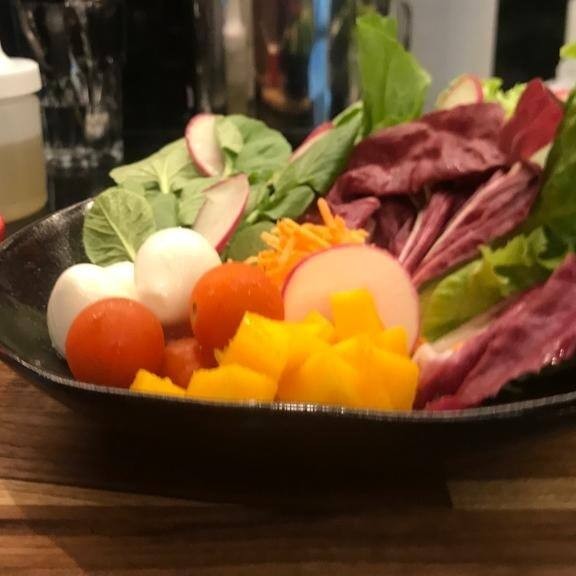 Mix de folhas frescas com cenoura e beterraba ralada, tomate cereja, mussarela de búfala e manga. Leve e refrescante.