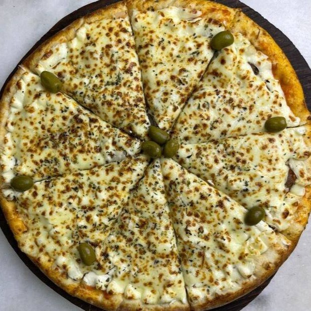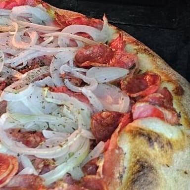 Molho caseiro, calabresa fatiada, cebola, finalizada com orégano