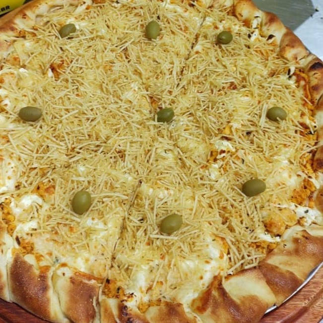 Carne seca, azeitonas e orégano. Escolher Se É Com: Queijo, Cheddar Ou Catupiry.