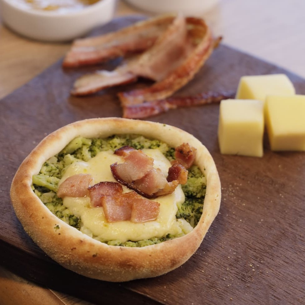 Mussarela,brócolis e bacon