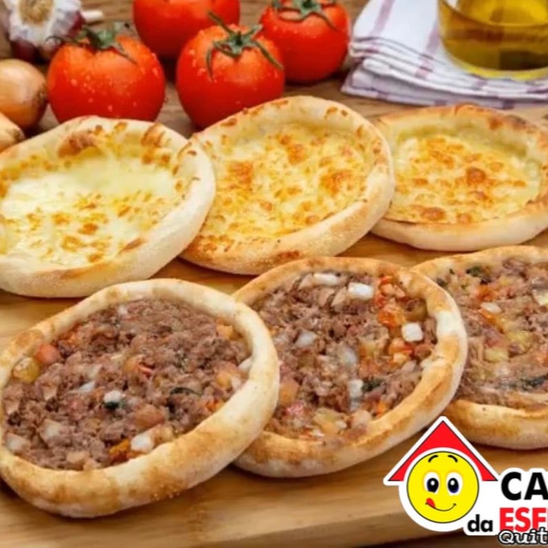 5 esfihas de carne, 5 esfihas de queijo, 5 esfihas de frango com Requeijão cremoso, 5 esfihas de calabresa + Coca Cola 2 litros.