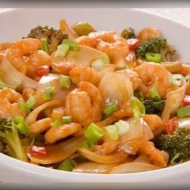 Deliciosos Camarão Fresco ao molho de tomate com cebolinha.
