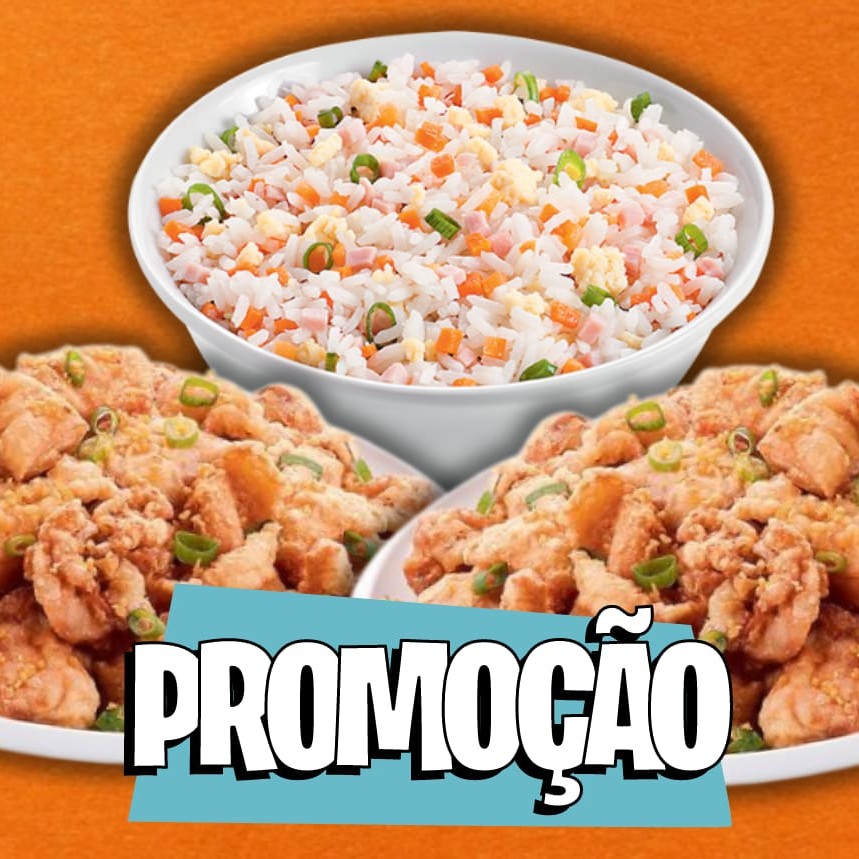 Promoção Irresistível Serve 2 Pessoas Deliciosos pedaços de Peito de frango com pimentão e cebola ao molho shoyu. Risoto De Presunto: Tradicional risoto chinês com ovo, cenoura, presunto e cebolinha.