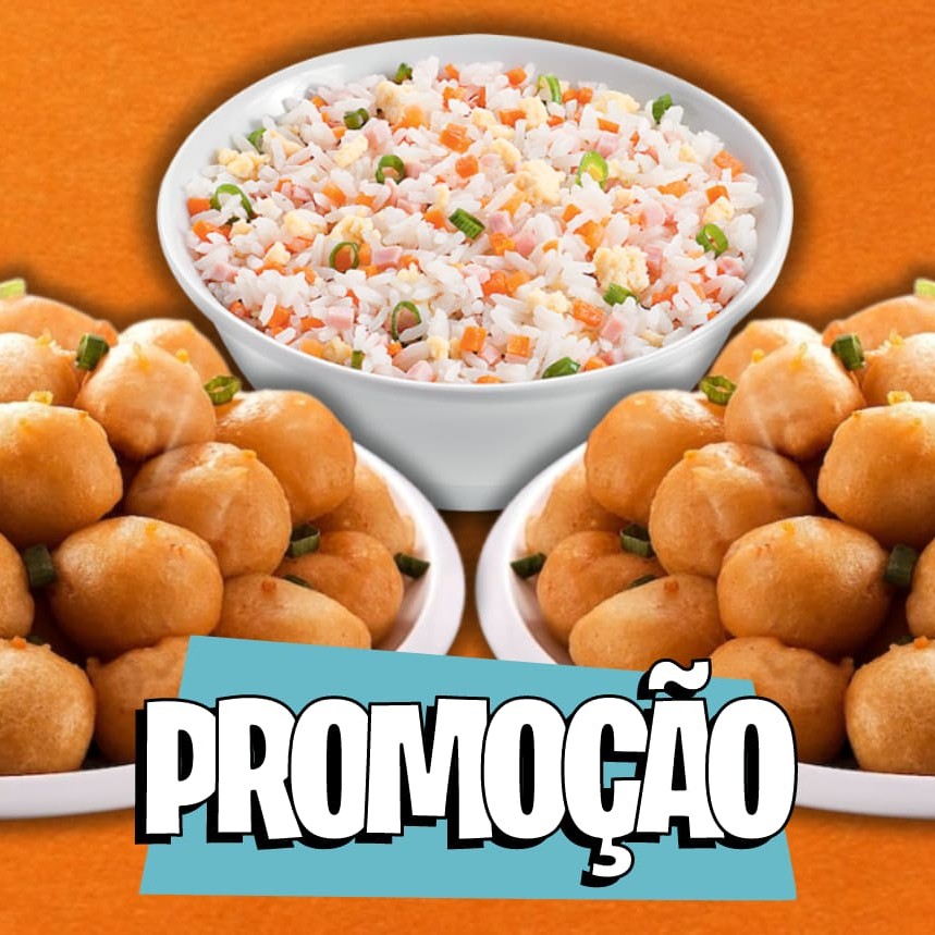 (02 Unidades no tamanho Pequeno, cada unidade serve 1 Pessoa) 1/2 Porção pequena de pedaços de frango em cubos envolvido em massa leve e frito. + 1/2 porção pequena de Arroz Chop-Suey.