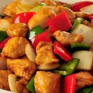 Deliciosos Cubos de peito de frango com pimentão e cebola ao molho shoyu. Arroz Chop-Suey é o nosso tradicional arroz soltinho refogado com flocos de ovo, cubinhos de cenoura e cebolinha. Saboroso Rolinho Com massa fina crocante e sequinha. Refrigerante Lata Bem Gelado.