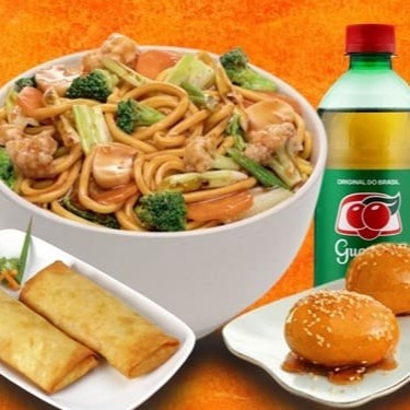 (02 Unidades no tamanho Pequeno, cada unidade serve 1 Pessoa) Saboroso macarrão chinês com carne, frango e legumes selecionados ao molho shoyu.