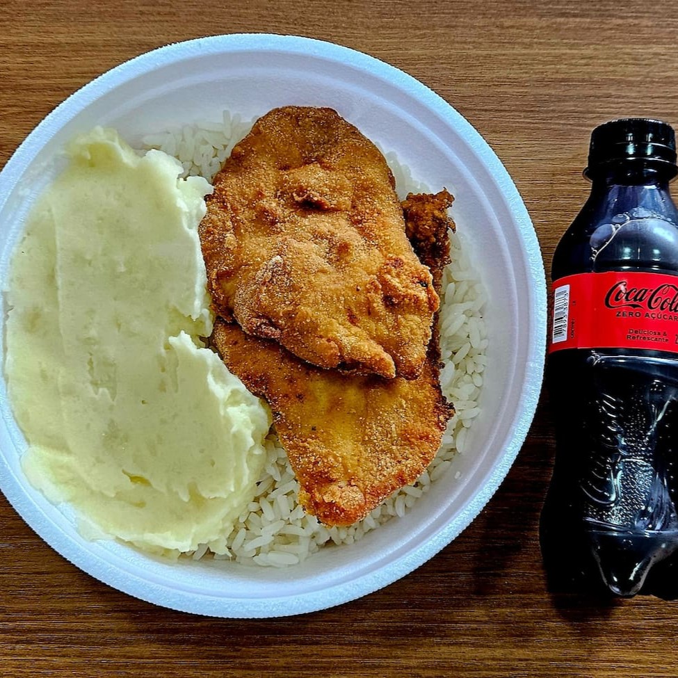Filé De Frango Empanado C Purê + Coca Lata Zero