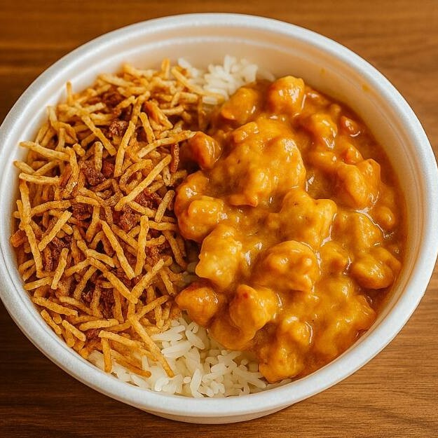 Estrogonofe Frango & Batata Palha Com Arroz.