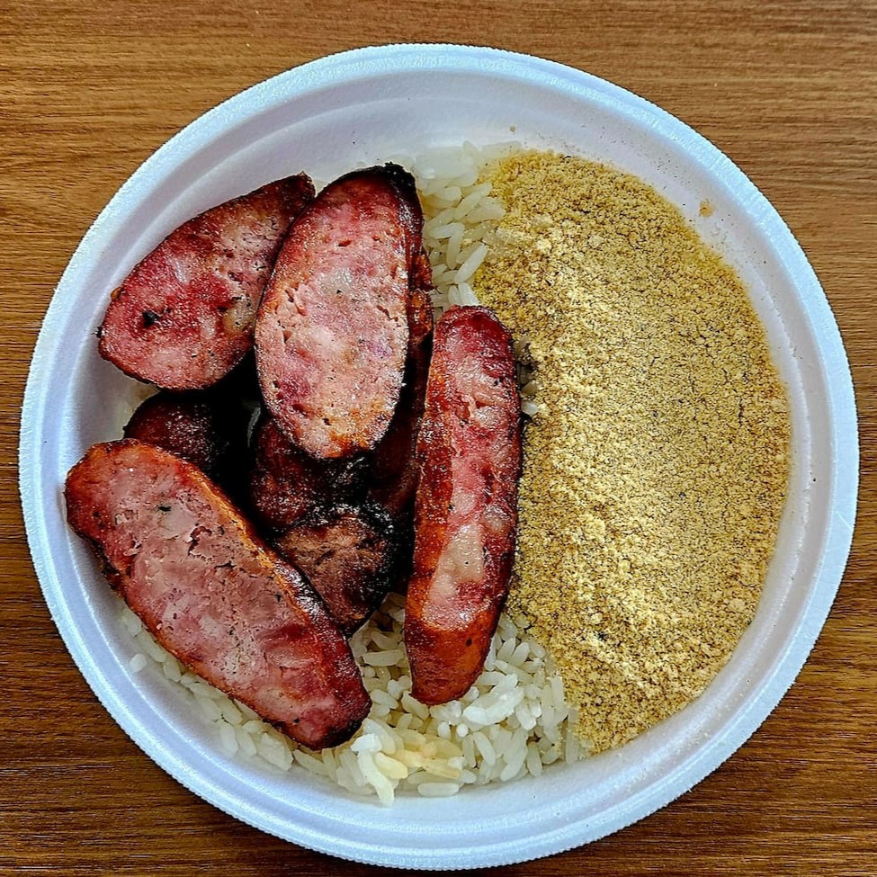 Linguiça de Churrasco Toscana Acompanha arroz, feijão carioca, linguiça toscana e farofa temperada