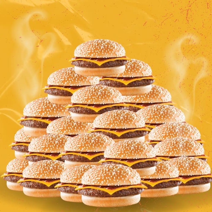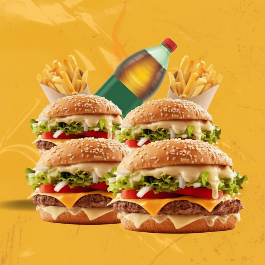 Escolha a quantidade de cada lanche: Big: 2 hambúrgueres de carne bovina, alface, queijo e molho especial Big bacon: 2 hambúrgueres de carne bovina, alface, queijo, maionese e bacon Big cheddar: 2 hambúrgueres de carne bovina, alface e creme cheddar Refrigerante de acordo com a disponibiliade