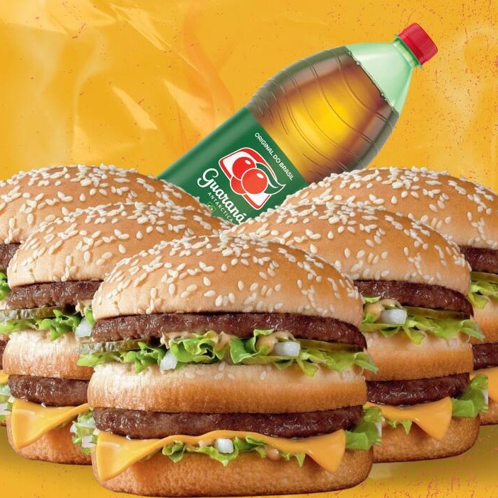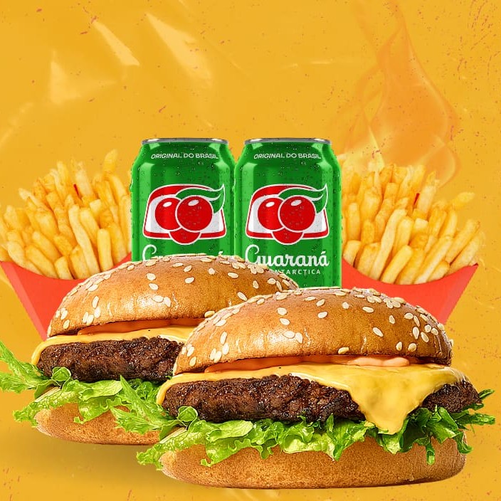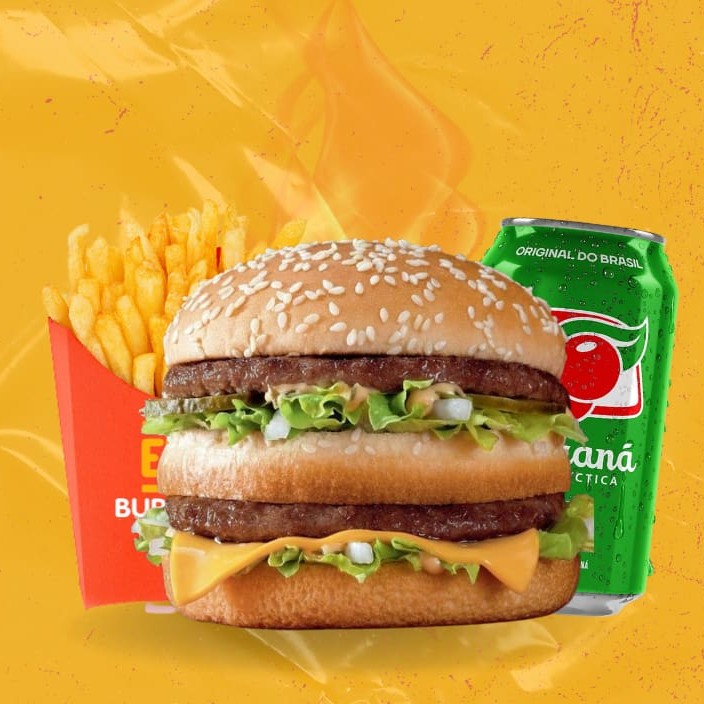 2 Hambúrgueres de carne bovina, alface, queijo e molho especial. Refrigerante de acordo com a disponibiliade, Guaraná ou Pepsi