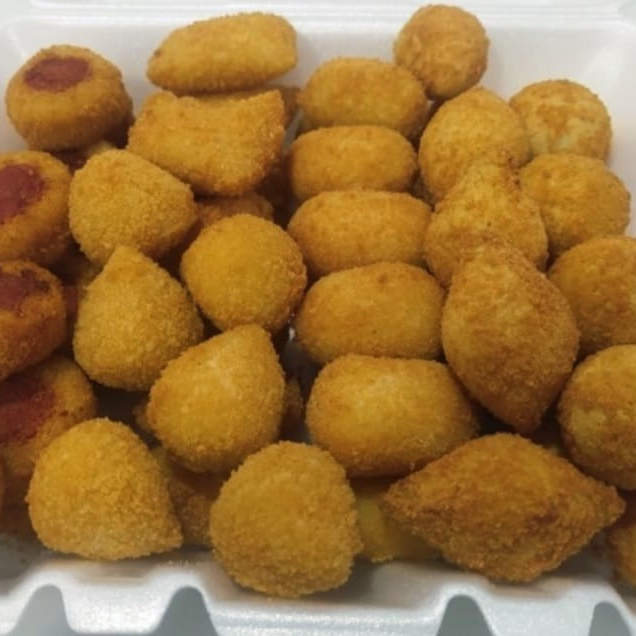 Coxinha Travesseiro presunto e queijo Bolinho de carne Bolinho de queijo Bolinho de calabresa