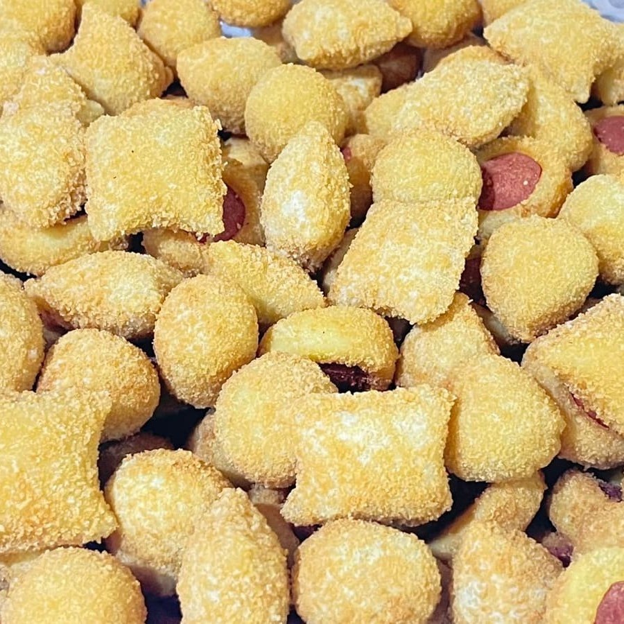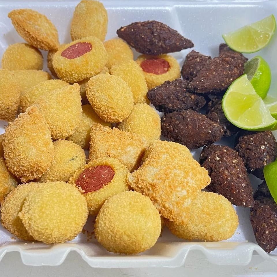 Coxinha, Risole, bolinho de carne Bolinho de queijo, Enroladinho de salsicha. Bolinho de calabresa