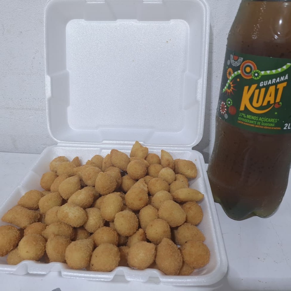 100 salgados festa 1 guarana Kuat 2 litros