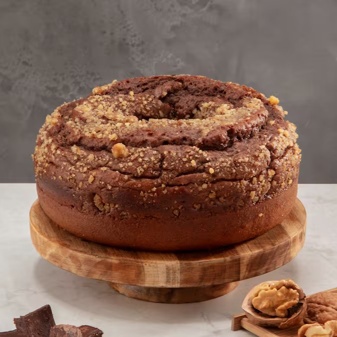 Brownie denso e úmido, com nozes que adicionam crocância e equilíbrio.