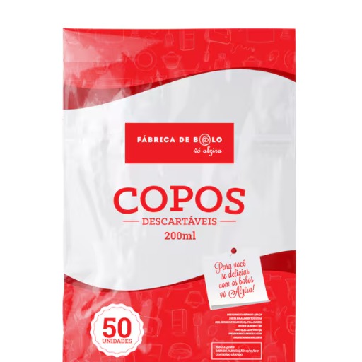 50 unidades de copos descartáveis. Imagem meramente ilustrativa.