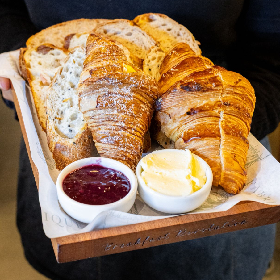 Fatias de Marcelle, multigrãos, moído a pedra frutas, miche, calabresa e gruyere, croissant, cornetto ou pain au chocolat. Acompanha porção de geleia e manteiga cortesia.