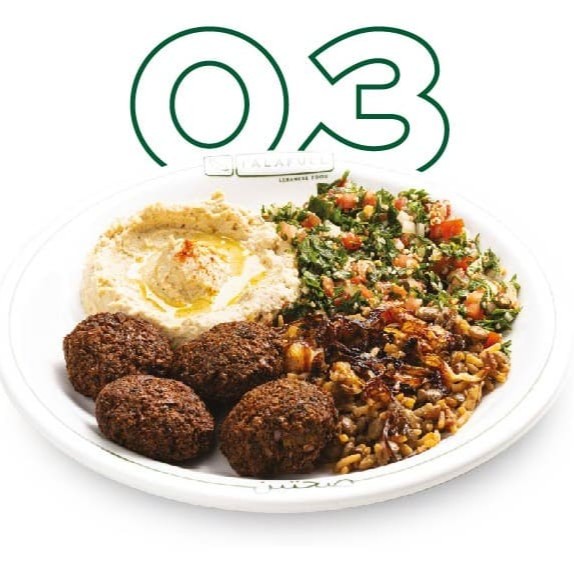 4 Falafel , Tabule , Arroz Lentilha