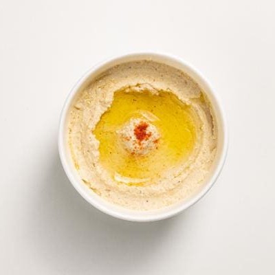 Pasta de grão de bico. Acompanha um pão libanês (contém glúten)