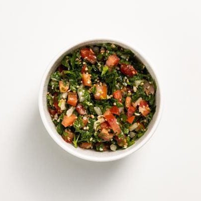 Salada de salsinha, tomate, cebola e trigo temperados e regados com azeite