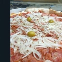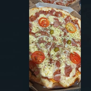 Molho, calabresa, cebola, muçarela e tomate