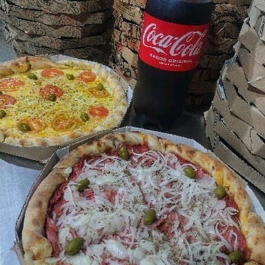 1 pizza de muçarela + 1 pizza de calabresa + Coca Coca Original 2l