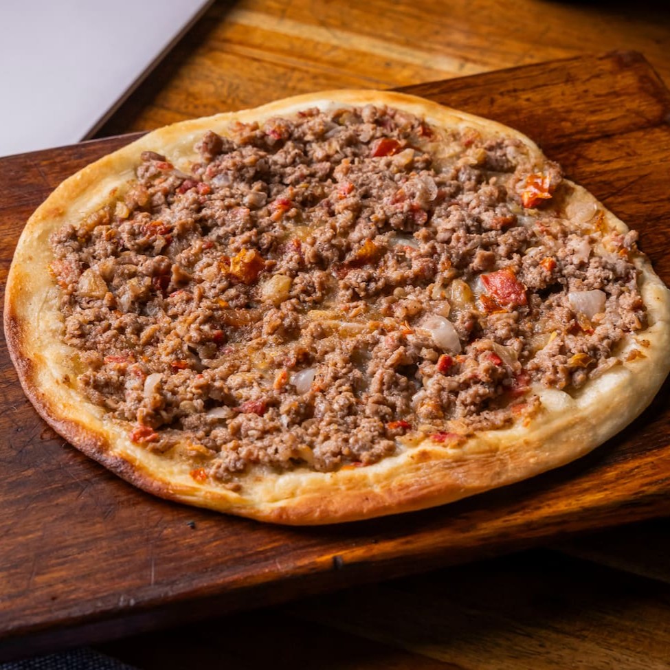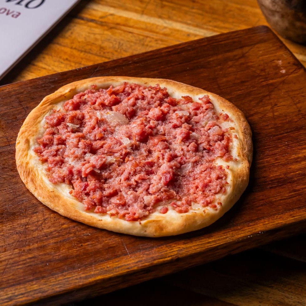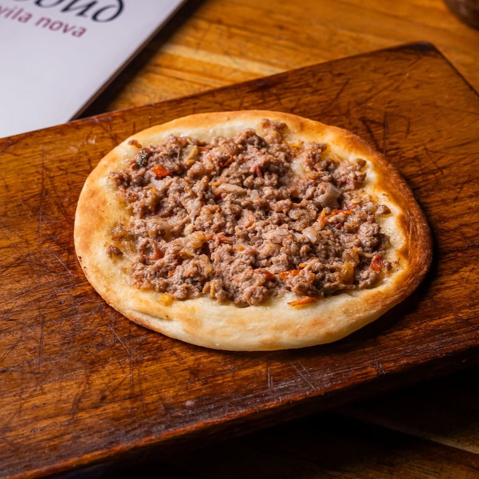 Saboreie nossa icônica Esfiha Aberta de Carne. Cada mordida revela uma explosão de sabor, graças à carne premium, selecionada criteriosamente por nossos chefs. Esta carne, que praticamente derrete na boca, é o segredo da nossa esfiha irresistível. O sabor clássico, aliado à excelência dos ingredientes, torna esta esfiha uma verdadeira delícia, que promete encantar seu paladar e deixar uma maravilhosa sensação de satisfação. Experimente e apaixone-se!