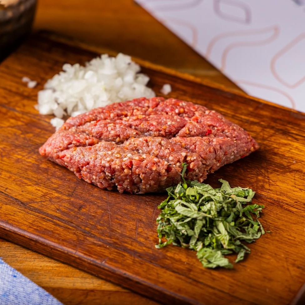 O nosso Kibe Cru é uma autêntica e sofisticada iguaria da culinária árabe. Cada porção de 200g é cuidadosamente preparada com carne altamente selecionada, moída especialmente para garantir a textura perfeita e a riqueza de sabor. Esta receita tradicional é uma experiência gastronômica que transporta você para o coração do Oriente Médio. Uma delícia para os amantes da culinária exótica e apreciadores de alimentos frescos e de alta qualidade.