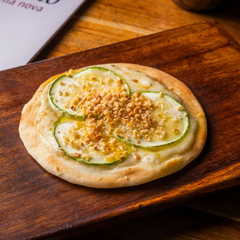 Feita com uma mussarela criteriosamente selecionada, garantindo qualidade e sabor incomparáveis. A abobrinha adicionada por cima traz um toque de frescor e leveza ao prato.