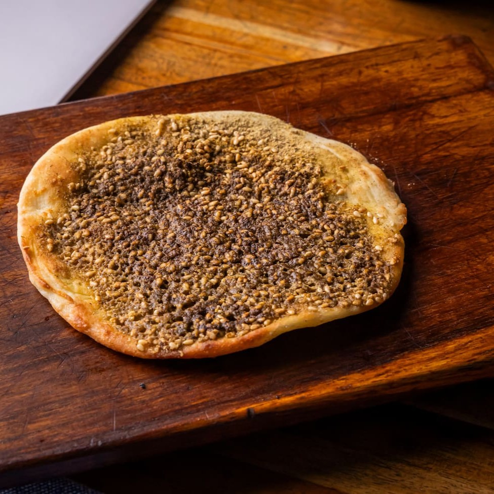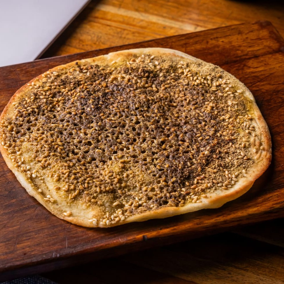 Descubra os encantos da nossa Esfiha Aberta de Zathar. Exaltamos os sabores vibrantes da zathar, uma especiaria árabe. Não é apenas uma esfiha, é uma viagem gastronômica que convida ao deleite dos sentidos. Permita-se provar e se apaixonar por nossa deliciosa Esfiha Aberta de Zathar.